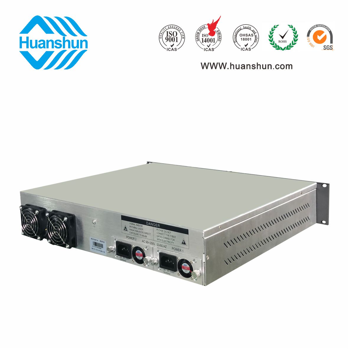 大功率光纖放大器EYDFA | YGF1532-16C | 19 " 2U/3U標(biāo)準(zhǔn)機(jī)箱,-5 ~ +10 d Bm輸入,32路標(biāo)稱規(guī)格(16、17、18、19、20、21、22、23dBm)放大輸出,并支持下調(diào)-2dB,安全連接模式,NF ≤ 5dB(0dBm時);內(nèi)置FWDM合波器,插播損耗 ≤ 1dB;雙模塊熱插撥電源,AC90 ~ 255V或DC-48V供電,RJ45標(biāo)準(zhǔn)網(wǎng)管(支持SNMP、WEB) |
